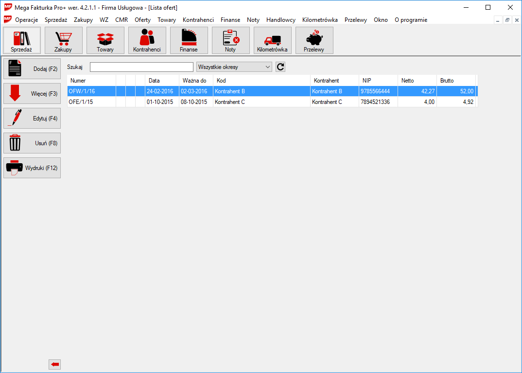 Edytuj (F4) - zaznaczoną ofertę można edytować