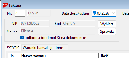 2. Na dokumencie zaznaczyć odbiorca (podmiot 3) na dokumencie