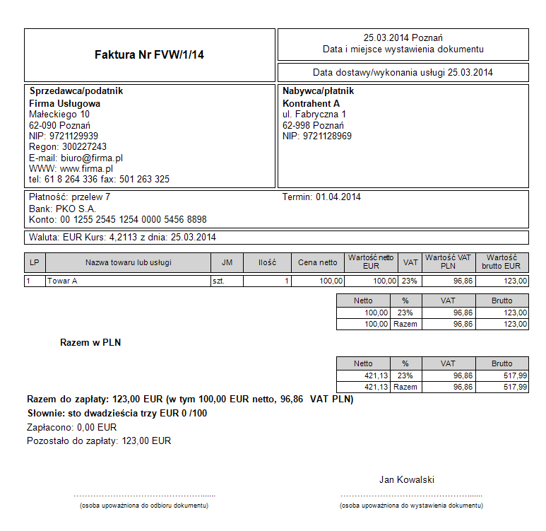 Dalej postępujemy analogicznie jak przy dodawaniu Faktury.