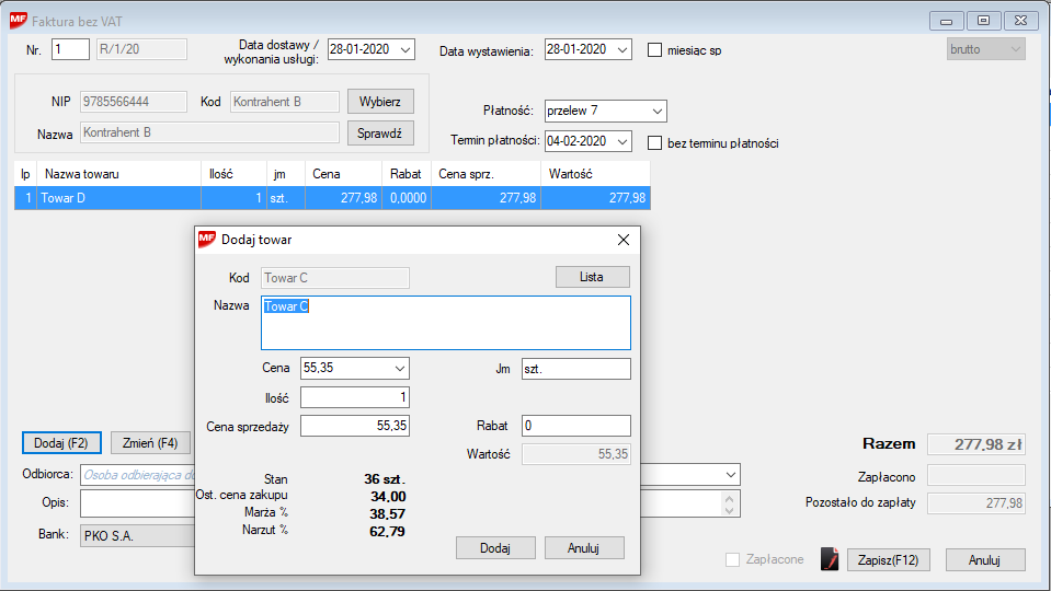 Dalej postępujemy analogicznie jak przy dodawaniu Faktury.