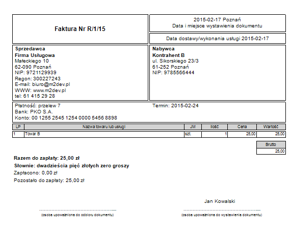 Przykład wydruku dokumentu: